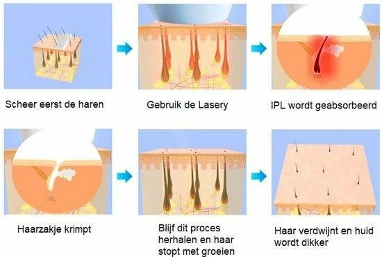 Permanente ontharing :IPL werkt binnen in de pori?n, vernietigt het haarzakje en realiseert daarmee permanente ontharing.
