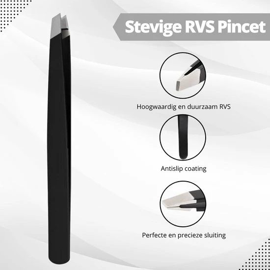 De wenkbrauwpincet is van hoge kwaliteit. Roestvrij staal, afgeronde randen en de matzwarte coating maken de pincet tot het perfecte schoonheidsproduct.