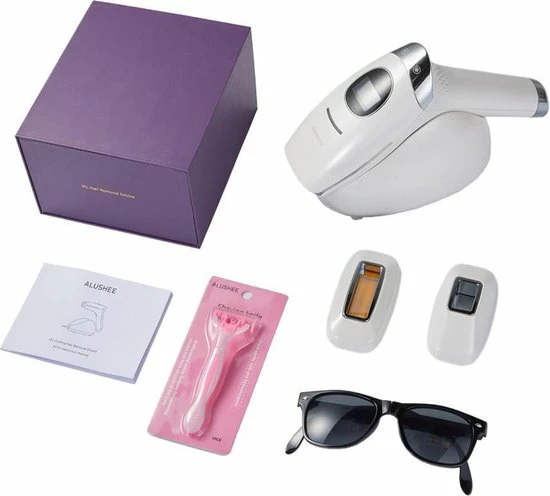 De ALUSHEE? verricht wonderen om teruggroei van haar op het lichaam te voorkomen. Zachte lichtpulsen zorgen, indien regelmatig gebruikt, dag in dag uit voor een zijdezachte huid. De Smart Skin-sensor adviseert de ideale lichtintensiteit op basis van je huidtype. IPL staat voor Intense Pulsed Light. ALUSHEE? stuurt zachte lichtpulsen naar de haarwortel en stimuleert het haarzakje om naar een rustfase te gaan. Als gevolg hiervan neemt de hoeveelheid haar die terug groeit geleidelijk af. Door herhaling van de behandeling wordt uw huid prachtig haarvrij en voelbaar glad. De behandeling is veilig en zacht genoeg voor gevoelige plekken. ALUSHEE? is klinisch getest en ontwikkeld in samenwerking met dermatologen voor eenvoudige en effectieve behandeling, vanuit uw eigen huis.