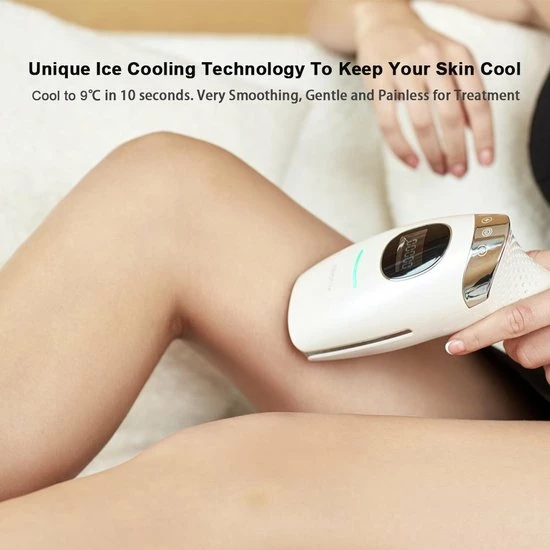 Haarverwijdering, Synchro-koude compressen, Huidverjonging en Acne verwijdering zijn de functies van dit IPL apparaat. Gebaseerd op Ice Cool technologie, werkt het ontharing apparaat met een ijskoud compres. Als de ijskoude verzorgingsmodus is geactiveerd, kan het de overmatige warmte die wordt gegenereerd door de quartzstraling op de huid verminderen .