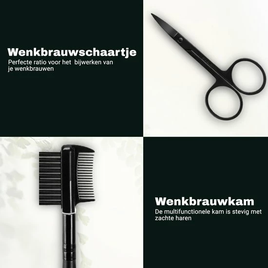 Je zult het meest gebruik maken van de pincet en het schaartje, maar deze set bevat tevens een shaper, borsteltje en scheermes voor uw wenkbrauwen. Je kunt met dit kleine scheermes heel precies de lijnen van uw wenkbrauw vormgeven. En het borsteltje om het gewenste effect aan je wenkbrauwen te geven. Voor de ultieme finishing look.