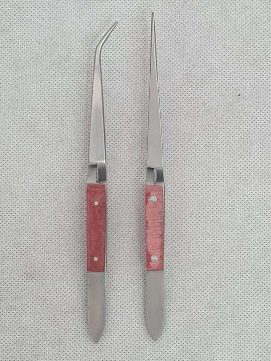 Belux Surgical / Set Van Straight & Curved Tweezer W/heat Resistant Grip Gereedschap 17cm RVS