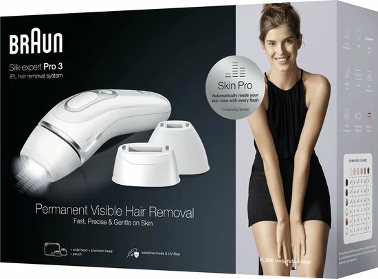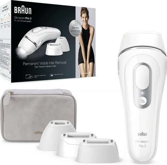 De Silk expert Pro 3 is geen laserontharingsapparaat, maar maakt gebruik van de nieuwste IPL-technologie van Braun. Krijg thuis tot 3 maanden een gladde huid en verminder haar zichtbaar in slechts 3 maanden. De Skin Pro-technologie past zich automatisch aan uw huidtint aan en optimaliseert het vermogen voor de perfecte balans tussen snelle resultaten en zachtheid voor de huid. Twee standen voor de gevoelige huid verzekeren uw huidcomfort en tot 100 flitsen per minuut zorgen ervoor dat u minder plekken mist.