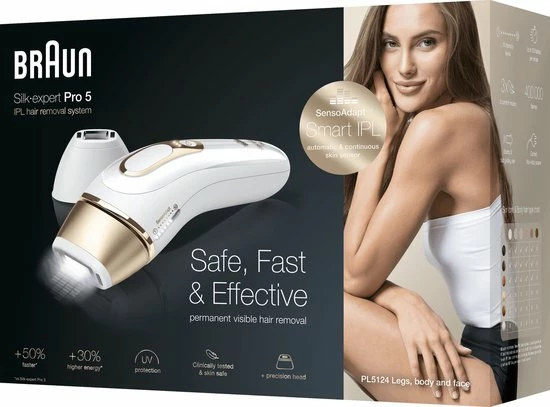 - De snelste IPL-behandeling: behandel beide benen binnen 5 minuten op het laagste energieniveau 2 keer sneller IPL-ontharen dan met de vorige Silk?expert 5 Met precisiehoofd, premium etui en Venus scheermesje