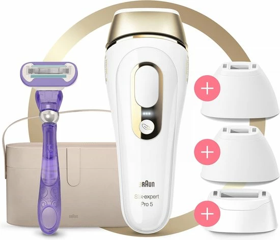 - Doos bevat: 1 x Silk?expert Pro 5 IPL/1 x Breed hoofd/2 x Precisiehoofd/1 x Venus scheermesje/1 x Premium etui