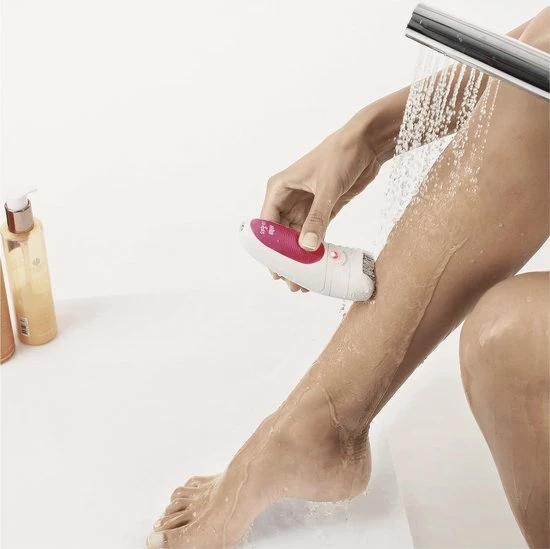 100% waterbestendig en met anti-slipgreep, zodat je je in bad of onder de douche kan epileren. Als je regelmatig onder water epileert, wordt het vrijwel pijnloos.