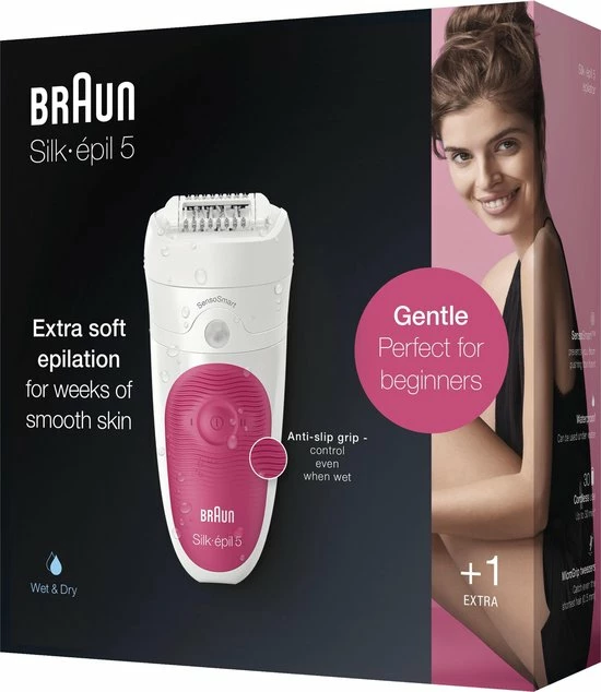 De Silk-?pil 5 heeft een instelling voor zachte ontharing. Met de antislipgreep kun je in bad of onder de douche epileren. Door regelmatig te epileren onder water wordt het vrijwel pijnloos – ideaal voor vrouwen die nog niet eerder een epilator hebben gebruikt.