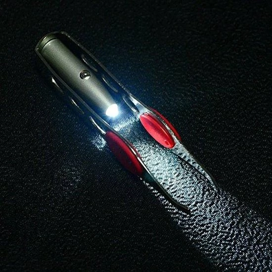 Pincet met lichtje wordt incl. batterij in eenvoudige doorzichtige verpakking geleverd.