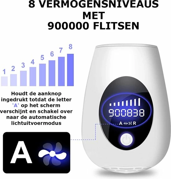 Gebruik van het IPL-ontharingsapparaat is volledig pijnloos en veilig door de 8 verschillende instelbare lichtsterktes die gekozen kunnen worden. Zo kun jij precies de juiste lichtsterkte kiezen voor het lichaamsdeel dat onthaard wordt. Het is dus ook geschikt voor tere en gevoelige lichaamsdelen.