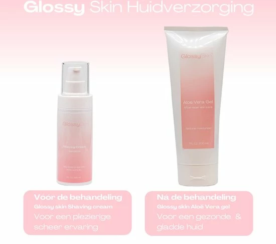 Geen dure ontharingsafspraken meer nodig. Met deze complete set heb je alles wat nodig is om jezelf een glossy skin te geven. De luxe set bevat een hoogwaardig scheermes, waarmee je voor de behandeling het lichaamshaar verwijdert. Maak tijdens de behandeling gebruik van de meegeleverde Aloë Vera Gel en Shaving Cream. Het dragen van een zonnebril is niet nodig.