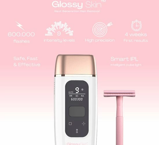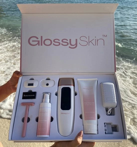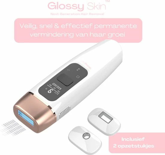De Glossy Skin IPL Pro is een van de krachtigste IPL apparaten op de markt. De afkorting IPL staat voor Intense Pulsed Light. Dit is een behandeling waarbij lichtflitsen op de huid worden afgegeven om haargroei te stoppen. Deze lichtflitsen worden in de haarwortels geabsorbeerd en omgezet in warmte, waardoor de haarzakjes worden vernietigd. De Glossy Skin IPL Pro is erg krachtig en zal na 4 weken voor zichtbaar minder haargroei zorgen.