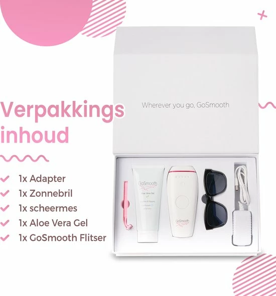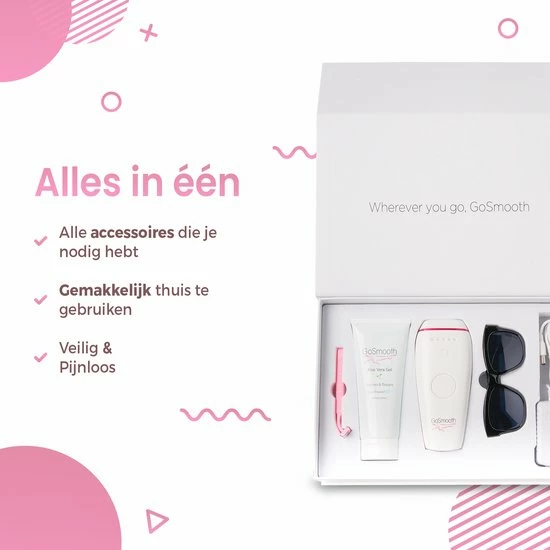 Met de volledige GoSmooth IPL Kit kan je meteen aan de slag. Je ontvangt bij aankoop namelijk handige accessoires. Begin met het scheren van de huidoppervlakte die je gaat behandelen en wacht vervolgens 24 uur voordat je gaat beginnen. Gebruik tijdens de behandeling de beschermende zonnebril voor het beschermen van je ogen. Na de IPL behandeling smeer je de huid in met de GoSmooth Alo? Vera Gel om de huid te laten herstellen.