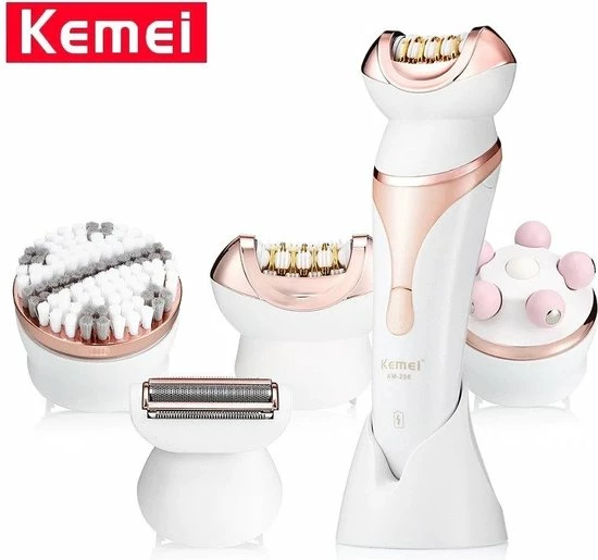 De Kemei 4 in 1 Epilator is het ideale epilator voor haar. Met de 4 verschillende koppen is het verwijderen van huidhaar nog nooit zo fijn en makkelijk geweest. Geschikt voor o.a. Lichaam, gezicht, oksels, enkels, bikinilijn, knie?n en tenen.