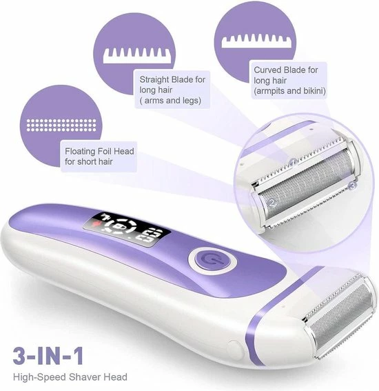 Multifunctioneel hypoallergeen scheerhoofd – Drie afzonderlijke scheermesjes zijn ontworpen voor verschillende delen van het lichaam waardoor haren op armen, benen, oksels of bikinirimpels kunnen worden verwijderd zonder resten achter te laten en de huid gladder maken.