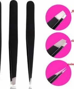 Merkloos Epileer Pincet – Wenkbrauwen – Splinters – RVS – Zwart
