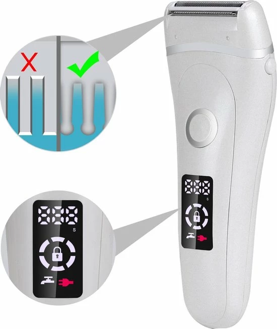 De ladyshave beschikt over een LED menu aan de voorkant. Hier kan je zien hoeveel procent de batterij nog heeft. Handig, dan weet je precies hoe lang de ladyshave nog mee kan gaan voordat je het wilt gebruiken. Zo sta je niet met een lege batterij te scheren onder de douche. Daarnaast geeft het LED menu ook aan of het apparaat schoongemaakt moet worden. Dit herkent het apparaat via de sensoren die de functies blokkeren.