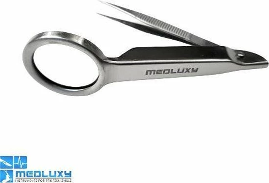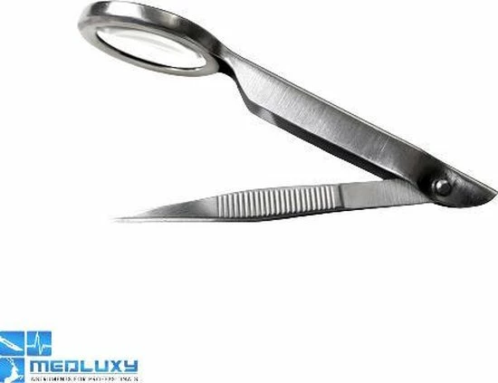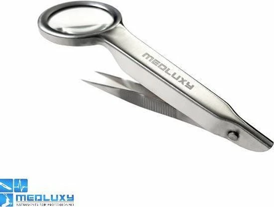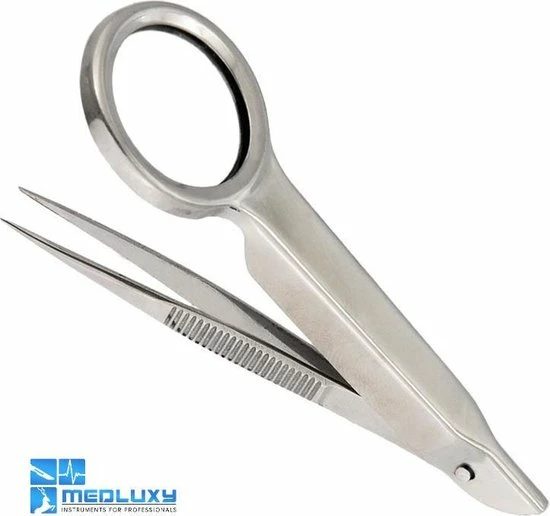 De Medluxy Splinter Pincet met vergrootglas is een handige instrumentencombinatie. De pincet heeft een fijne en puntige tip. De totale lengte is 10 cm. En is met de hand vervaardigd van kwaliteit roestvrij staal.