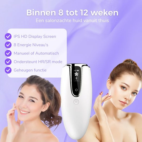 Door het universeel ontwerp is dit laser ontharingsapparaat geschikt voor elk lichaamsdeel. Gebruik de automatische modus voor grote lichaamsdelen zoals benen en armen en de manuele modus voor kleine lichaamsdelen zoals de oksels, bovenlip en bikinilijn. Dit IPL laser ontharingsapparaat heeft 8 lichtsterktes, elk geschikt voor een bepaald huidtype. Het IPL laser ontharingsapparaat hoeft maar één keer aangeschaft te worden om in een aantal behandelingen duurzame lichaamsontharing te bewerkstelligen voor permanente ontharing!