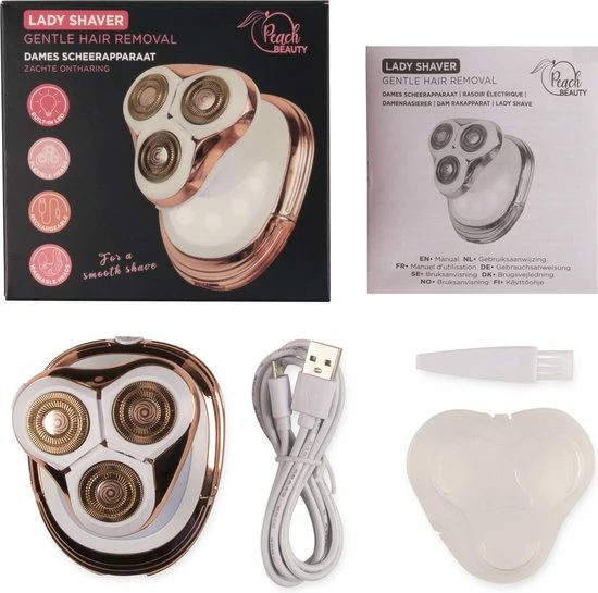 Ladyshave met 3 soepele scheerkoppen in handig meeneemformaat. Dit scheerapparaat voor vrouwen beweegt zich mee met de rondingen van jouw lichaam en zorgt voor een babyzachte huid. Met ingebouwde LED-verlichting en inclusief schoonmaakaccessoire.