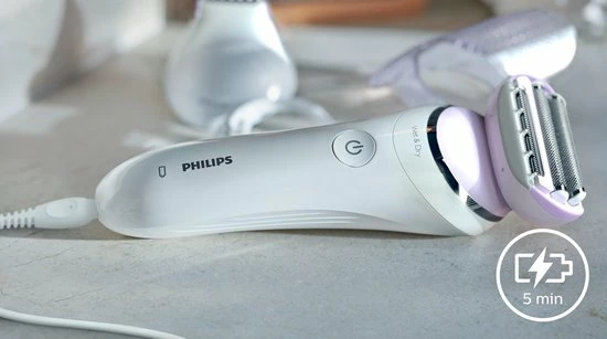 De ladyshave beschikt over een snel opladen functie: in 5 minuten opgeladen voor een volledige scheerbeurt.