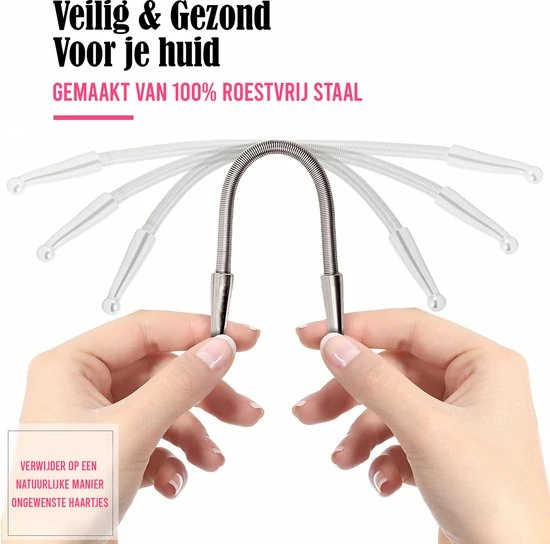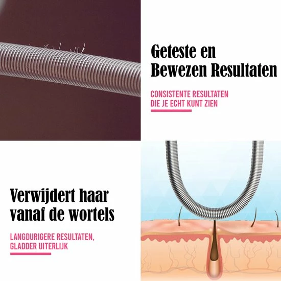 De epileerveer is veilig voor de huid. Je hoeft niet langer gebruik te maken van cr?mes, ontharingsmiddelen, scheerapparaten of dure gezichtsbehandelingen. Geen plastic, geen kleurstoffen en geen chemicali?n die de huid uitdrogen of beschadigen. Extra fijn als je een gevoelige huid hebt! De epileerveer is geschikt voor ieder haartype ? van stugge haren tot zachte haartjes.