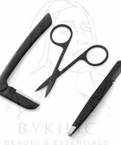 ByKilic Beauty & Essentials Epileer Set – Pincet – Wenkbrauwschaar – Mesje – Kam – Zwart – RVS