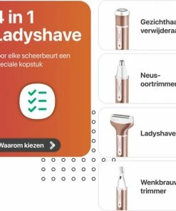 Smart-Tech – 4 In 1 Ladyshave – Oplaadbaar – Wenkbrauw Trimmer – Neus- En Oor Trimmer – Rose Gold