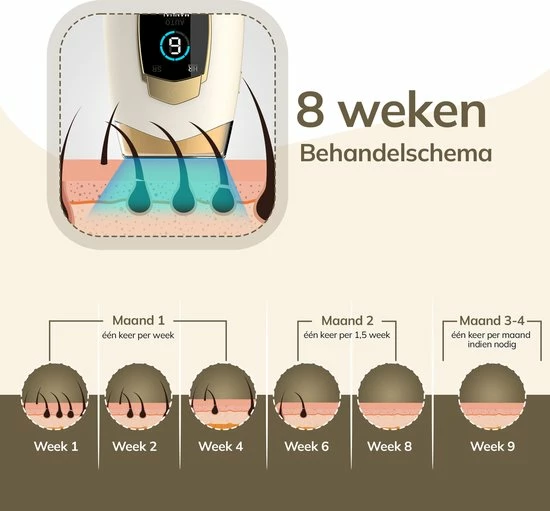 Inhoud: IPL Ontharingsapparaat + Voedingskabel + Beschermbril + Handleiding (NL/EN)