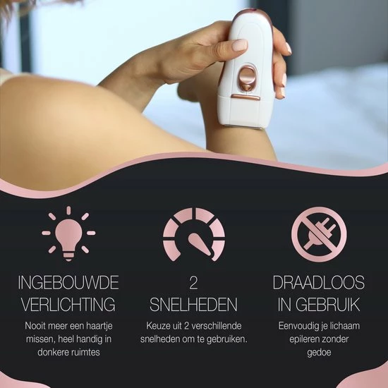 ? Multifunctioneel bruikbaar ? Met de drie meegeleverde accessoires is jouw epileerapparaat ideaal voor zowel epileren, scheren als het verwijderen van eelt. Onze epilator is bij zowel daglicht als in het donker perfect te gebruiken. De ingebouwde verlichting gaat automatisch aan en is ideaal in ruimtes die niet goed verlicht zijn. Mis nooit meer een haartje en geniet van een prachtig gladde huid.