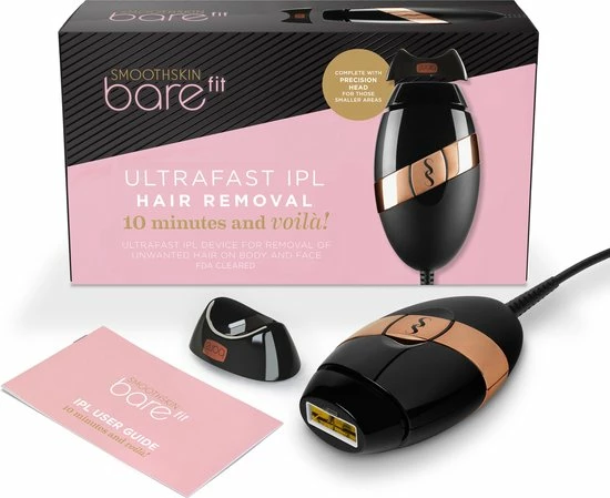 SmoothSkin Bare Fit IPL is het veiligste en snelste apparaat op de markt*. Het levert een volledige lichaamsbehandeling in slechts 10 minuten. Met zijn one-touchbediening, ingebouwde veiligheidstechnologie en gecontroleerde energieafgifte is Bare Fit de eenvoudige, volkomen veilige oplossing voor een effectieve, langdurige haarvermindering. Bereik tot 97% haarvermindering na 12 weken**!