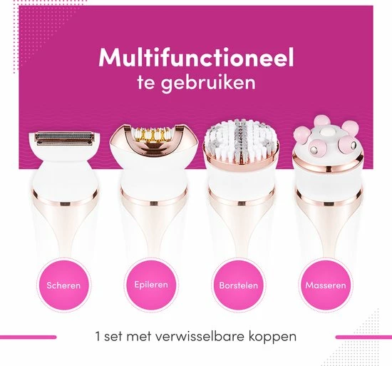 - Epileren/scheren – De epileer- of scheerfunctie helpt je om ongewenste haar van armen, benen, oksels, bikini en andere gevoelige gebieden makkelijk, veilig en effectief te verwijderen.