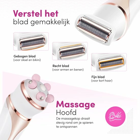 Zeg vaarwel tegen ge?rriteerde huid en ingegroeide haren. De TheBeautyWay 4-in-1 Ladyshave heeft hypoallergene mesjes en is geschikt voor elk huidgebied. Bikinilijn, benen, oksels, geen probleem! Je kunt zowel nat als droogscheren. Het rechte scheerblad is ideaal voor de benen en armen. Lastige plekken zoals de oksels pak je aan met het gebogen blad. De laatste stoppels verwijder je met het folie scheerapparaat. Altijd een perfect glad resultaat in een handomdraai!
