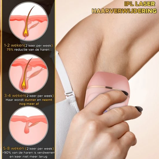 Door middel van IPL technologie kan jij met de lichtflitsen die de TOIVO IPL 760 PRO afgeeft haargroei stoppen. Deze lichtflitsen worden geabsorbeerd en omgezet in warmte door het haarzakje, waardoor deze vernietigd wordt. Met de IV-Laser zorg jij er voor dat dit tot 4 keer sneller gaat dan een “normale” IPL. En dit geheel pijnvrij!