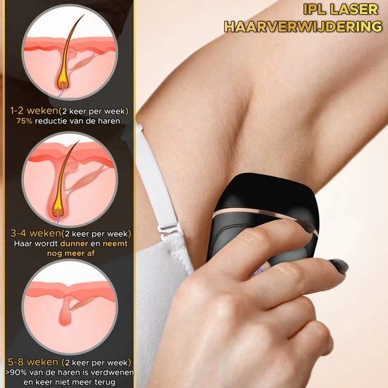 Door middel van IPL technologie kan jij met de lichtflitsen die de TOIVO IPL 760 PRO afgeeft haargroei stoppen. Deze lichtflitsen worden geabsorbeerd en omgezet in warmte door het haarzakje waardoor deze vernietigd wordt. Met de IV-Laser zorg jij er voor dat dit tot 4 keer sneller gaat dan een “normale” IPL. En dit geheel pijnvrij!