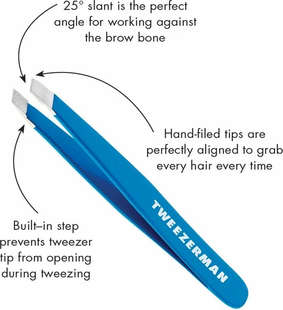 De Mini Slant Tweezer van Tweezerman is de kleinere variant van de wereldberoemde Slant Tweezer. Het perfect gevormde pincet met handvervaardigde schuin aflopende punten verwijdert keer op keer zelfs de fijnste haartjes met dezelfde precisie. Gebruik de schuine zijde voor epileren in het algemeen. Draai het pincet om en gebruik de punt zijde voor het precisiewerk. Ideaal formaat voor in de make-up tas en voor op reis.