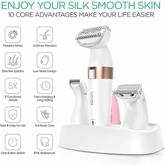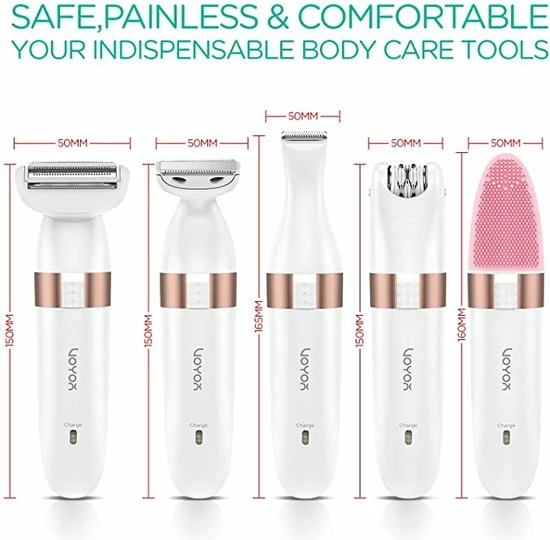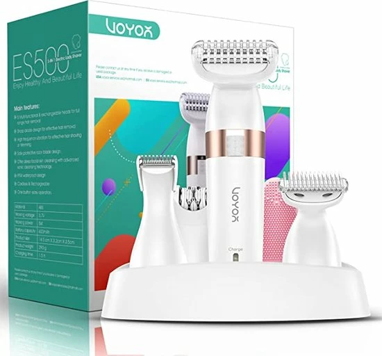 VOYOR 5-in-1 Elektrisch Scheerapparaat Voor Dames, Epilator Voor Bikini, Gezicht En Lichaam, Scheerapparaat Voor Dames, Draadloos, Oplaadbaar, Waterdicht ES500