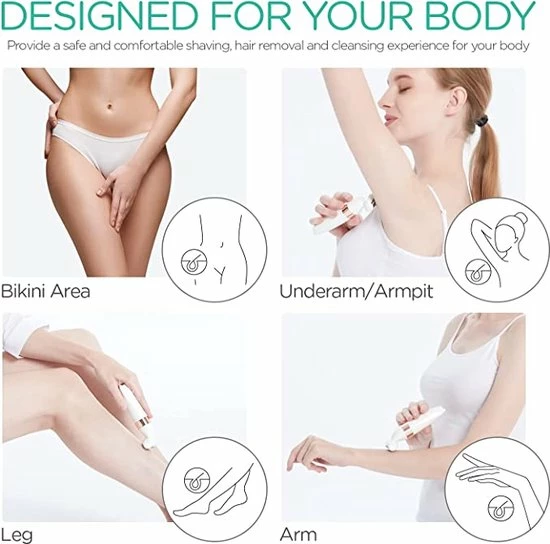 - Pijnvrij en veilig: het ontwerp van het scheermesje met zijn anti-allergische beschermlaag kan ongewenste haren op gezicht, armen, benen, bikinizone of elk ander deel van het lichaam verwijderen zonder de huid te trekken.