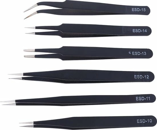 Met deze handige set pincetten heb je een pincet voor elke gelegenheid. Deze precisie pincetten zijn anti statisch, waardoor je wenkbrauw haartjes niet blijven plakken!